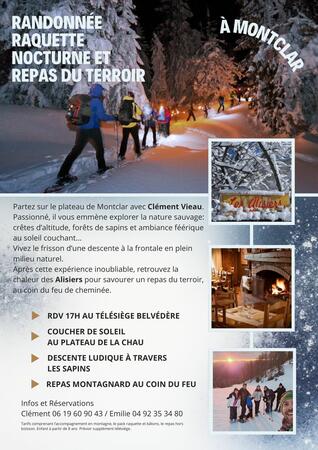 Let your guide guide you on a fabulous descent of the Montclar plateau, under the setting sun, snowshoes at your feet.